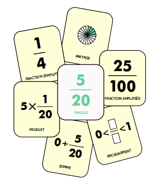 FRACMILY est un nouveau jeu qui consiste à associer des cartes représentant le même nombre (ou un encadrement de ce nombre). Il est inspiré de jeux proposés par Élisabeth SECHET et Vanessa HAMEL. Un grand MERCI à elle.